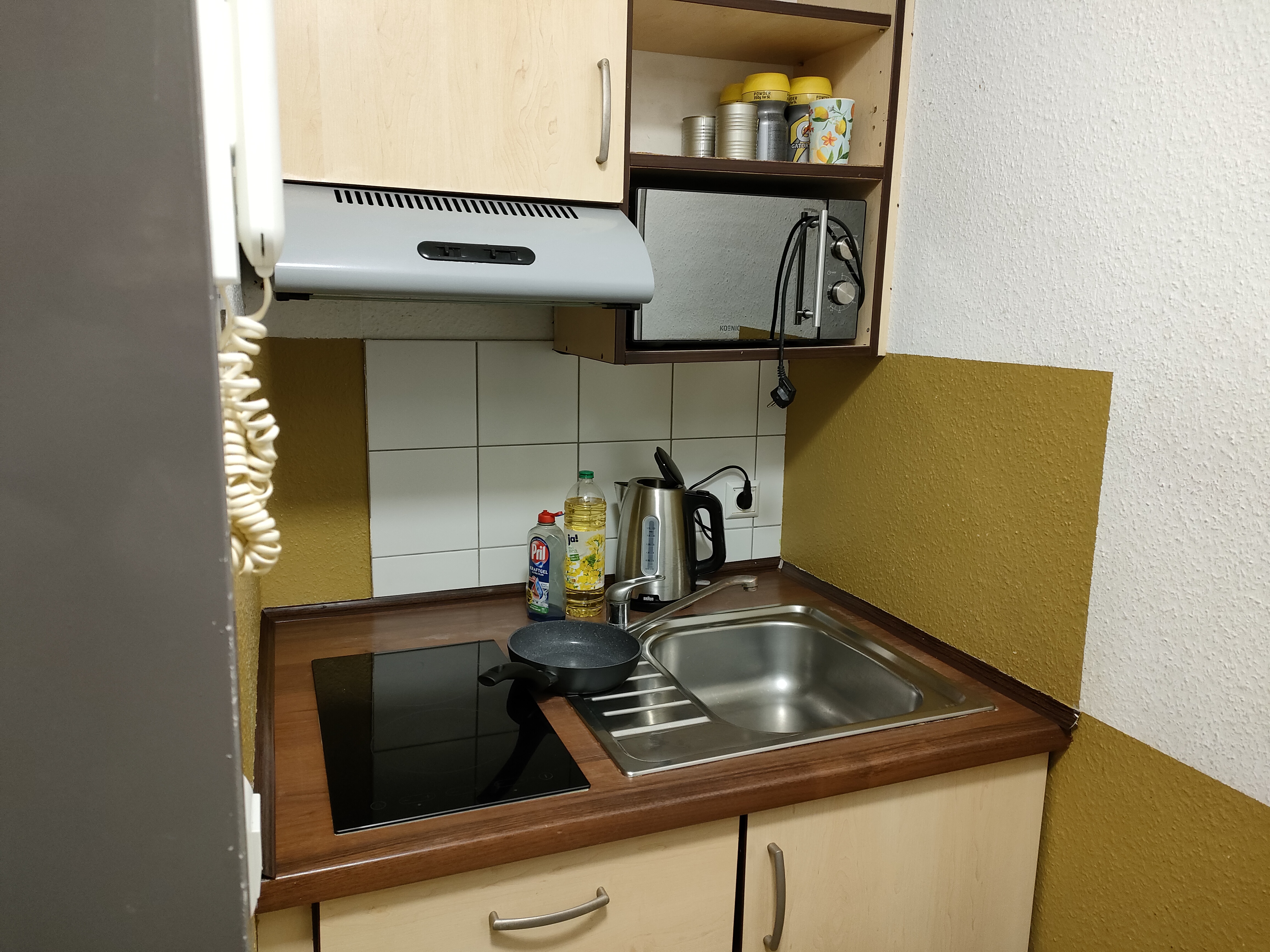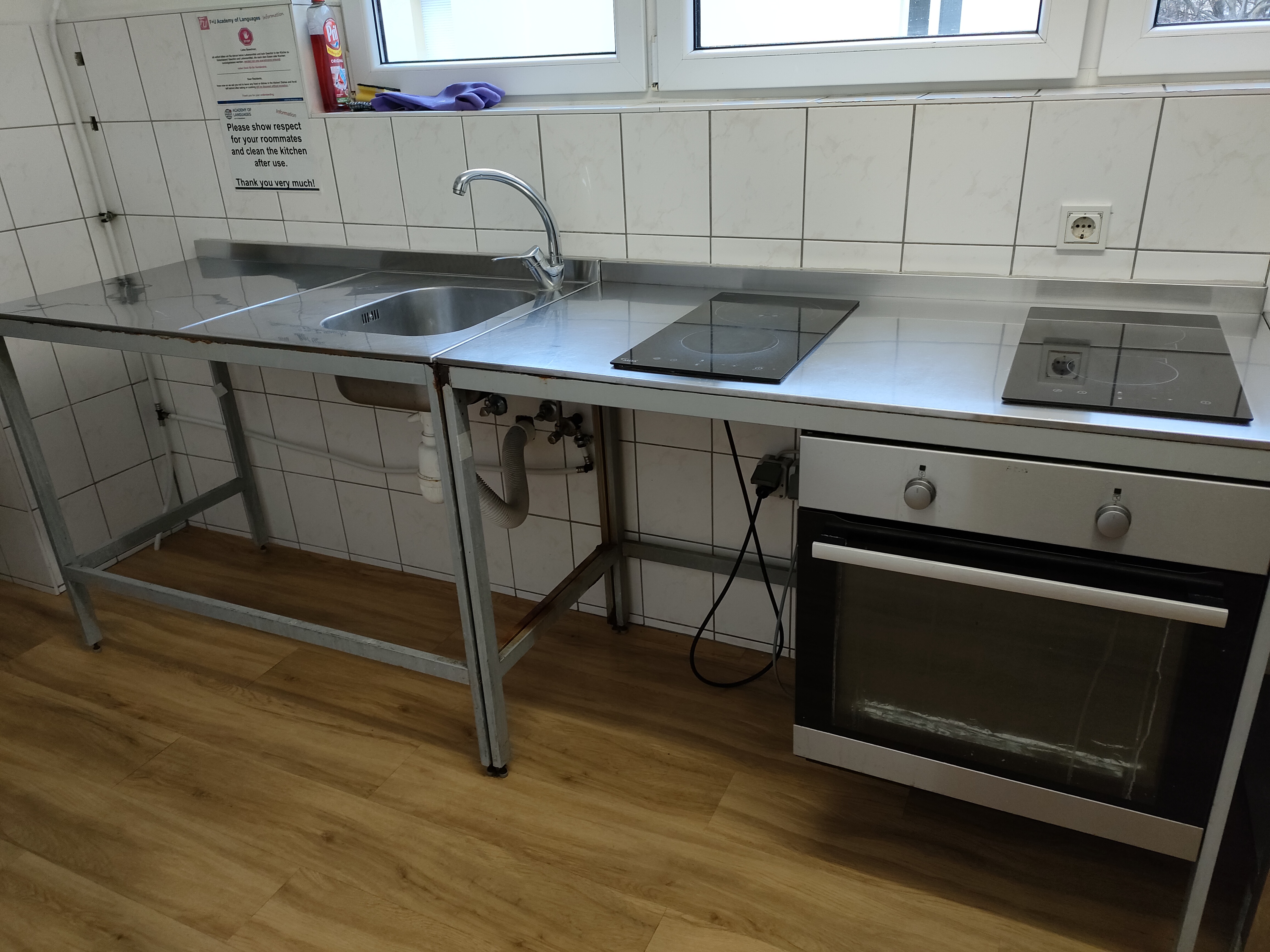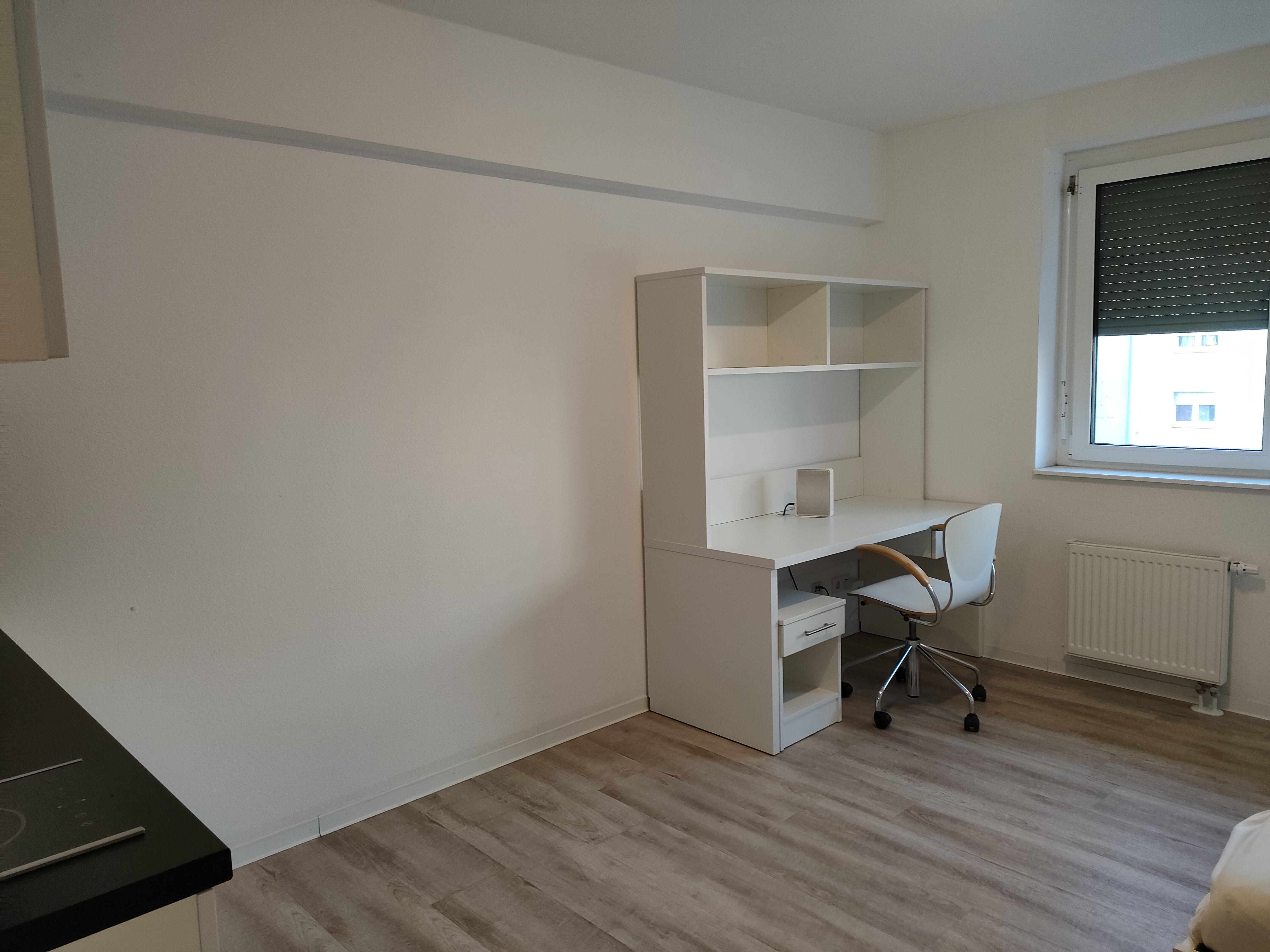 基本的にはどの寮もシングルルームですが、カテゴリーによって「専用バス・キッチン付き」「共同バス・キッチン」「学校までの距離」などの条件が変わります。私が滞在した部屋は、簡易キッチン・バス・トイレがすべて専用で、F+Uの校舎までは路面電車で約15分という便利な立地でした。ハイデルベルク中心部からもアクセスが良く、通学にも生活にも不便はありません。