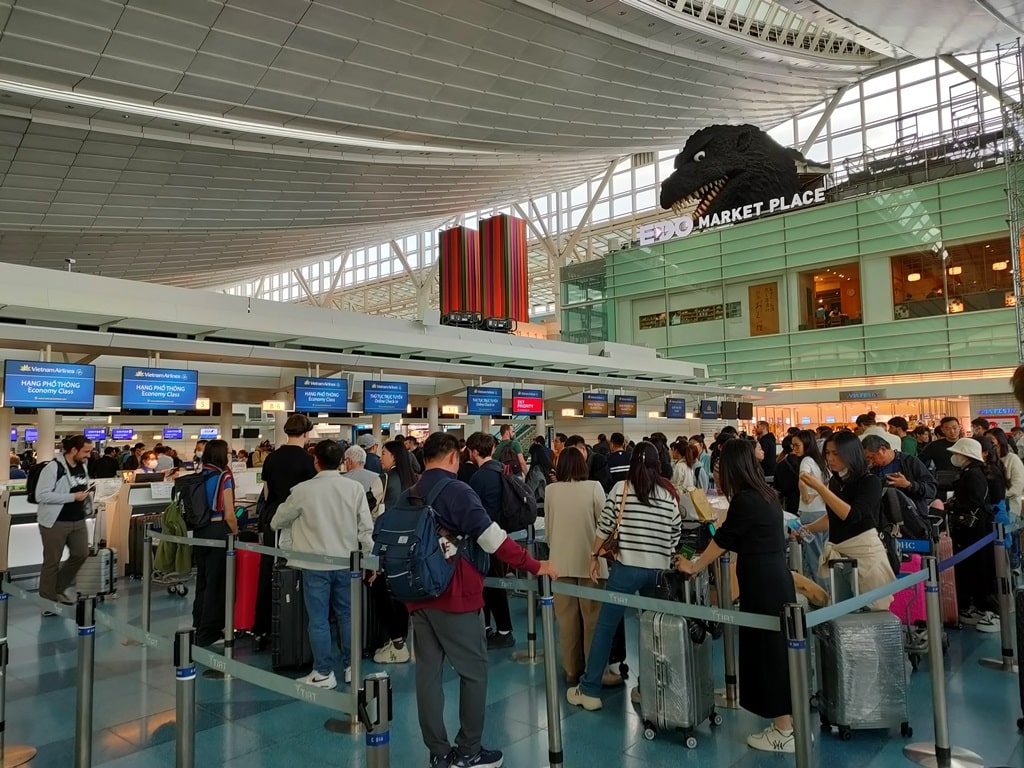今回は、羽田空港からベトナム航空を利用し、ハノイ経由でフランクフルト空港へ向かいました。出発が日曜日だったこともあり、羽田空港のチェックインカウンター前には長い列ができており、スーツケースを預け終えるまでに30分ほどかかりました。国際線を利用される方は、やはり時間に余裕を持って空港に到着することをおすすめします。