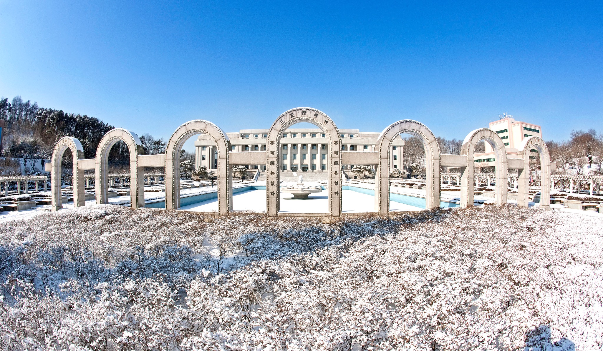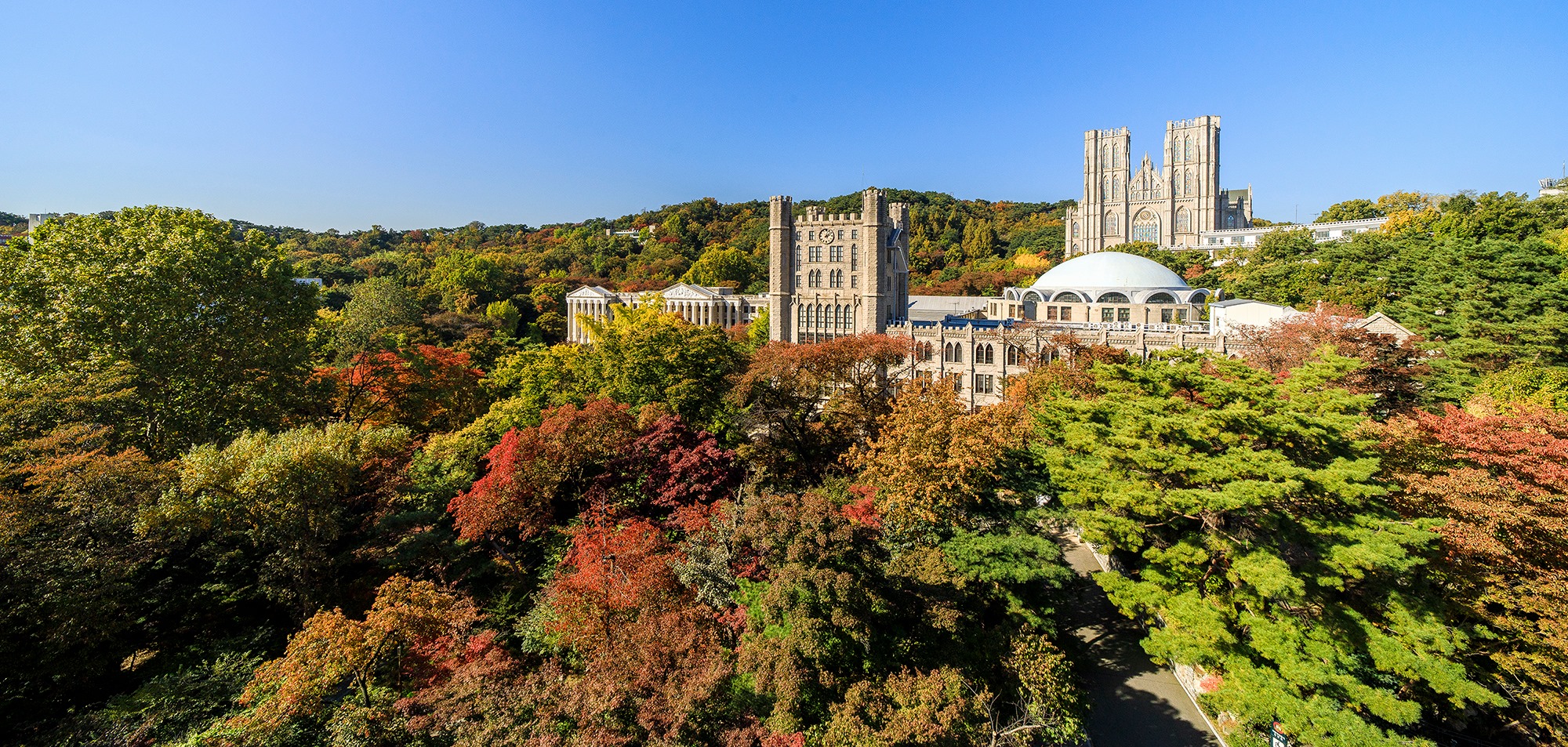 キョンヒ大学は韓国国内でも屈指の美しいキャンパスを誇ります。ヨーロッパの宮殿を思わせる壮麗な建築様式、広大な敷地、象徴的な平和の殿堂など、荘厳で格式高い学習環境が整っています。この特別な空間で学ぶ経験は、語学留学をより印象深いものにしてくれます。