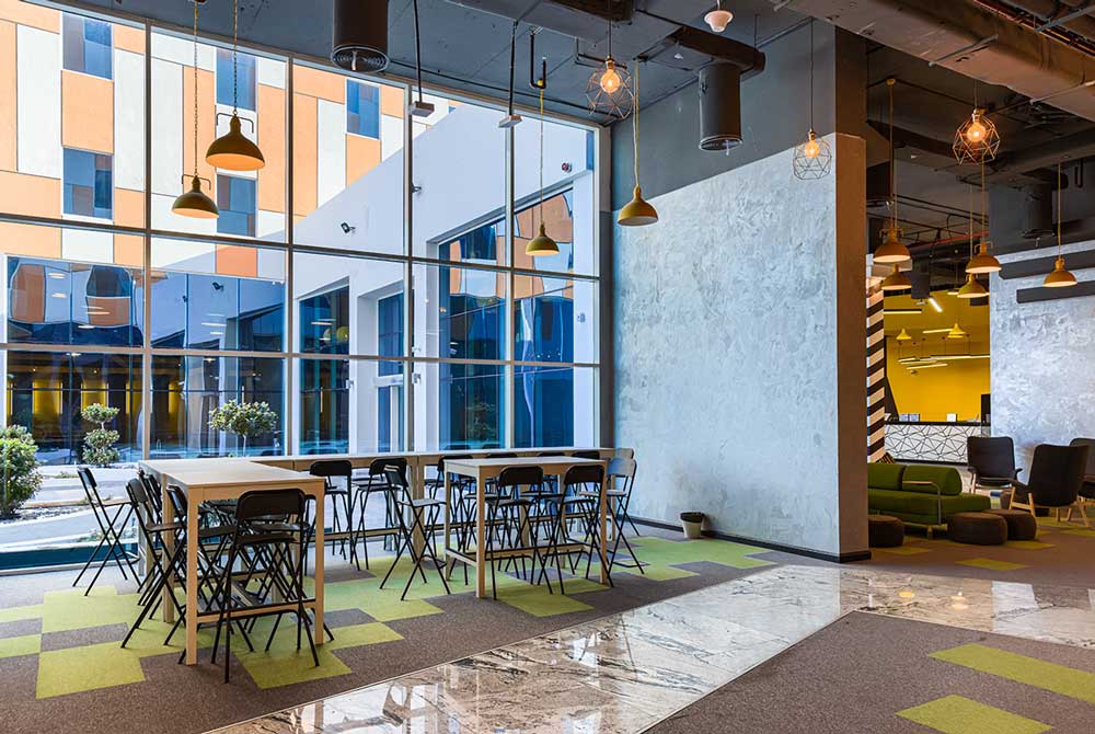 校舎があるのは世界第2の面積を誇る人工湾・ドバイマリーナの内陸側、4つの人工湖と無数の高層ビルからなるジュメイラ・レイク・タワーズ。