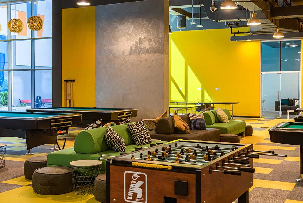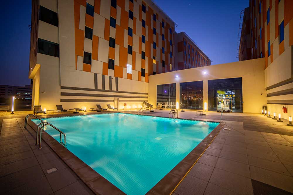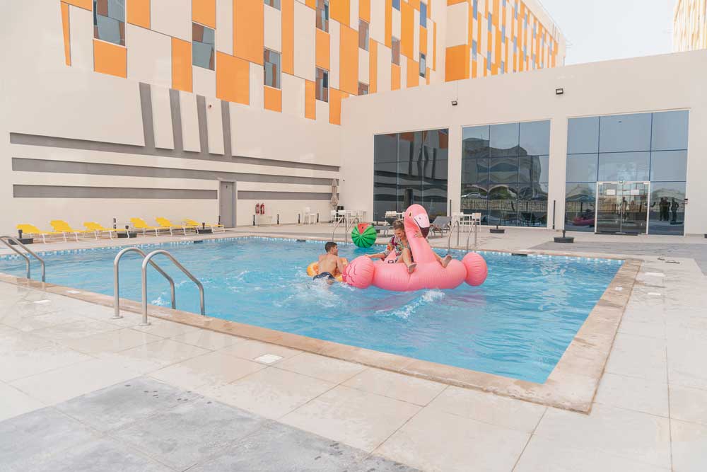 ESドバイの学生は、レジデンス内にあるプールやスポーツジム、シアタールームなどを自由に利用することができ、学校への通学は無料の送迎バスが利用できます。(朝夕3本ずつ)