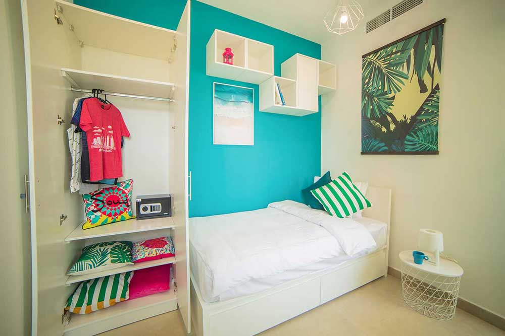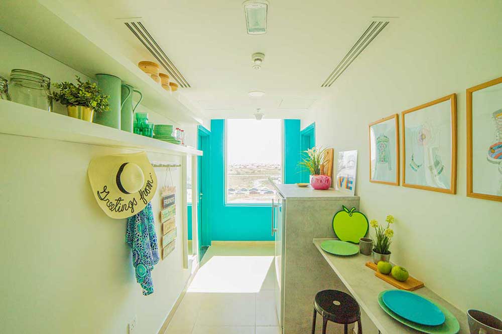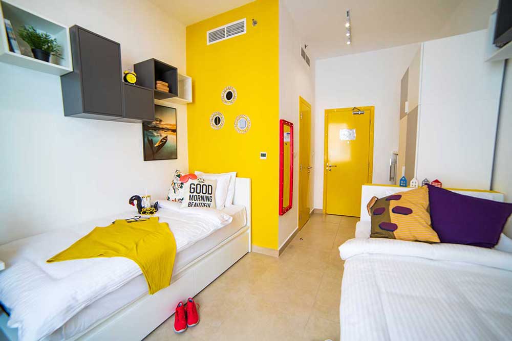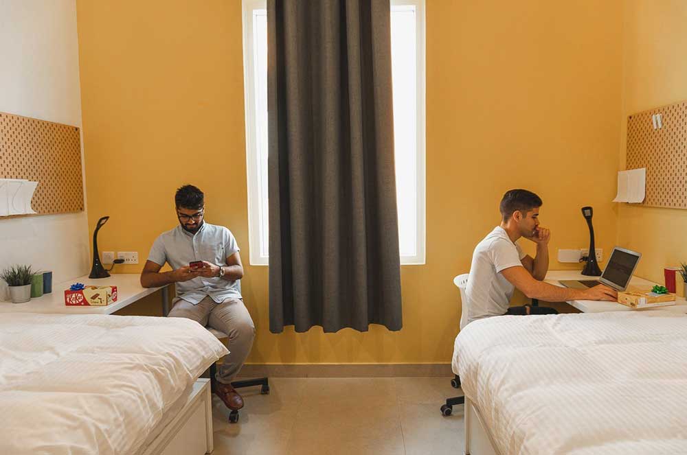 世界の経済をリードするドバイには世界の有名大学がキャンパスを展開しており、ESドバイの学生は彼らと同じ学生レジデンスに滞在することができます。部屋はユニット型になっており、リビングは複数の生徒で共有し、ベッドルームはシングル/ツイン/簡易キッチン付きのスタジオルームから選べます。